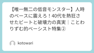 40代のおっさんベーシストである俺が、独断と偏見、そして溢れんばかりのリスペクトを込めて贈る「ベーシスト特集」。その記念すべき第一弾は、この男しかいない。