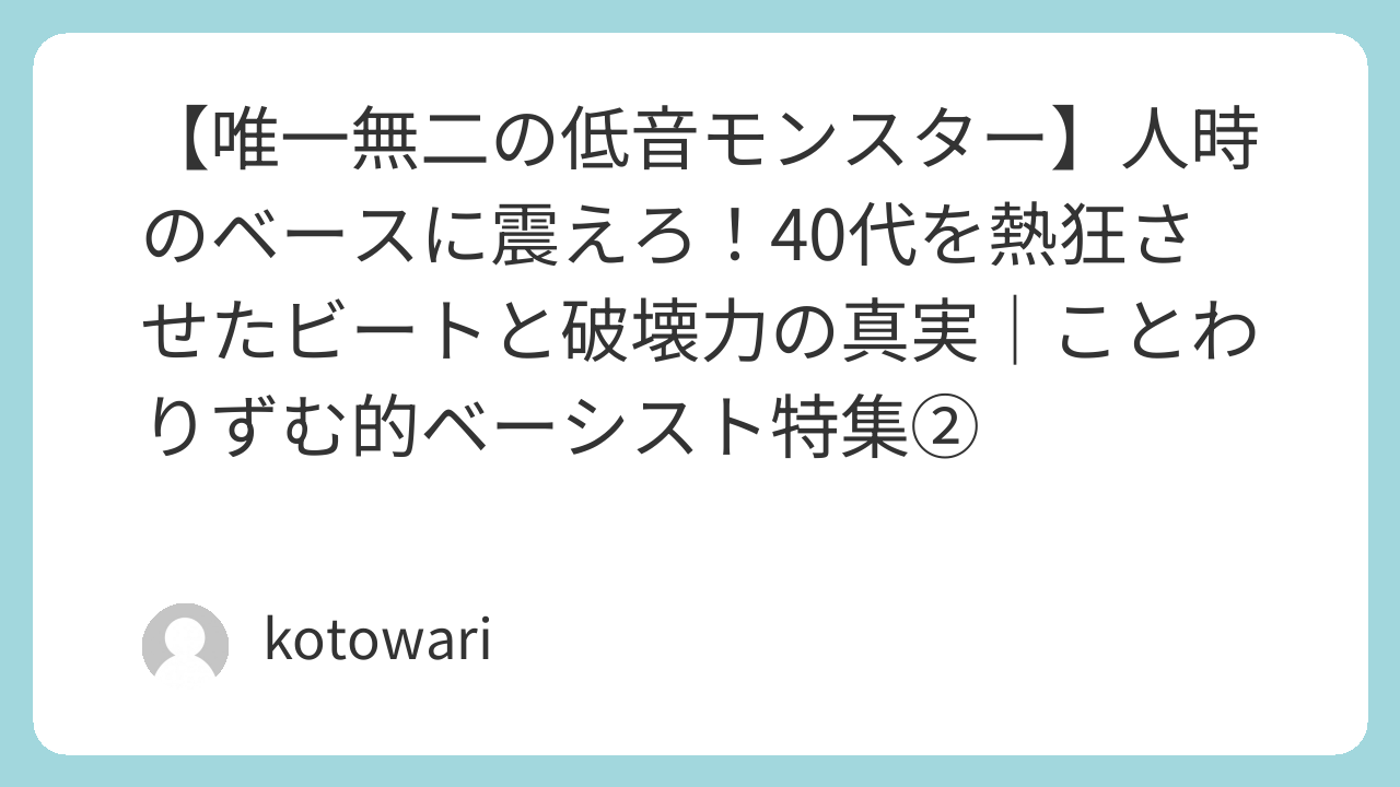 人時のベースを聴くと、若かった頃の「根拠のない自信」や「反骨心」を思い出す。40代になって社会に揉まれていても、彼の重低音を聴けば、心の中にある「黒い炎」がまた燃え上がるんだ。